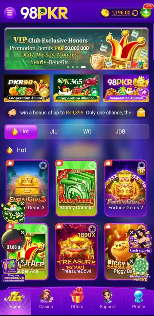 The 98PKR platform has quickly become a favorite among players looking for a mix of fun gaming and real earning opportunities. It brings together fast gameplay, easy controls, and a wide range of options from cards and slots to live rooms and competitive modes. What makes it stand out is how smoothly everything works: the interface feels familiar, payments are handled through trusted local methods, and players can jump between different games without long load times. The app appeals to beginners and regular gamers alike, offering steady updates, fair play, and frequent chances to win cash, bonuses, and rewards.