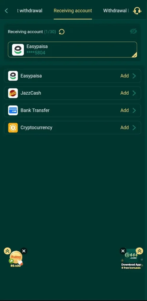 You can use JazzCash, Easypaisa, or direct bank transfer for both deposits and withdrawals, making transactions simple and fast.