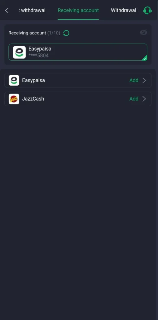 - Open the withdrawal section and choose Easypaisa, JazzCash, or bank transfer.
